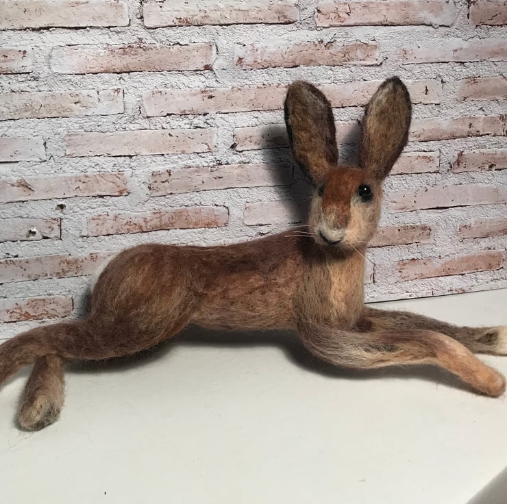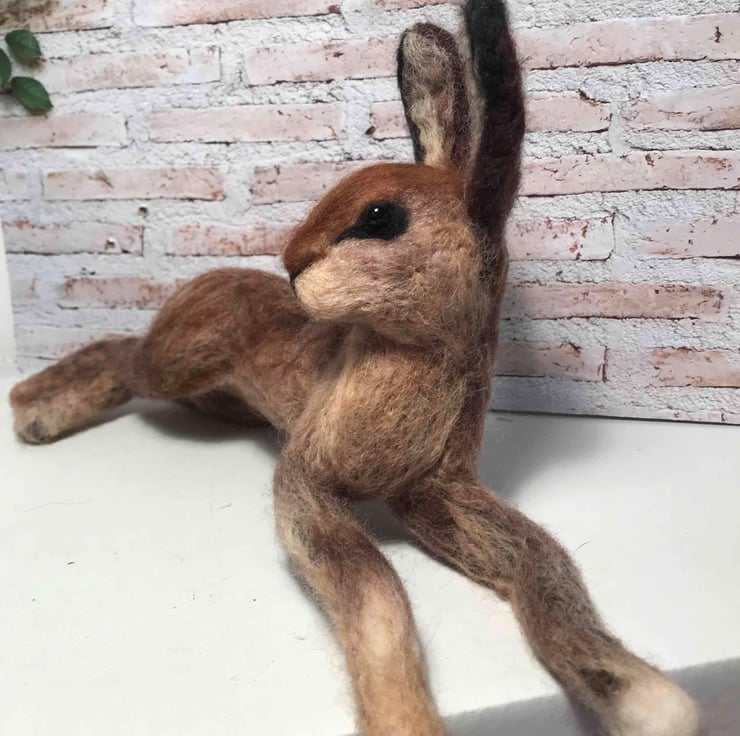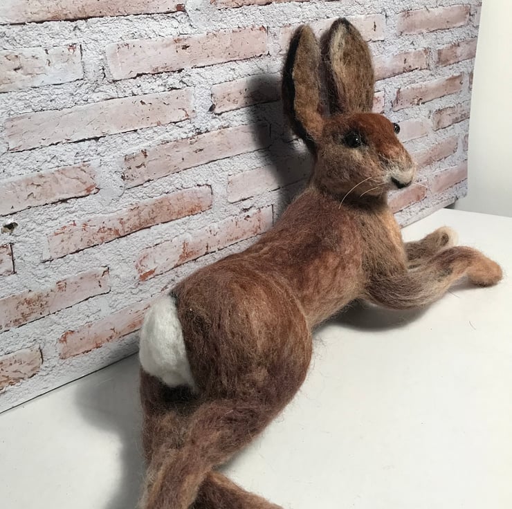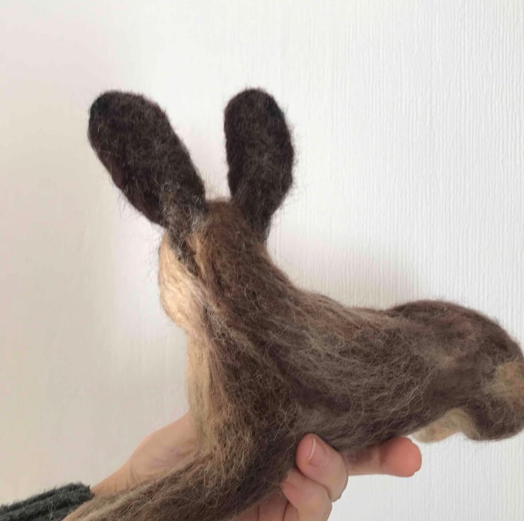 Carefully felted using space dyed wool to give a realistic look to his fur .