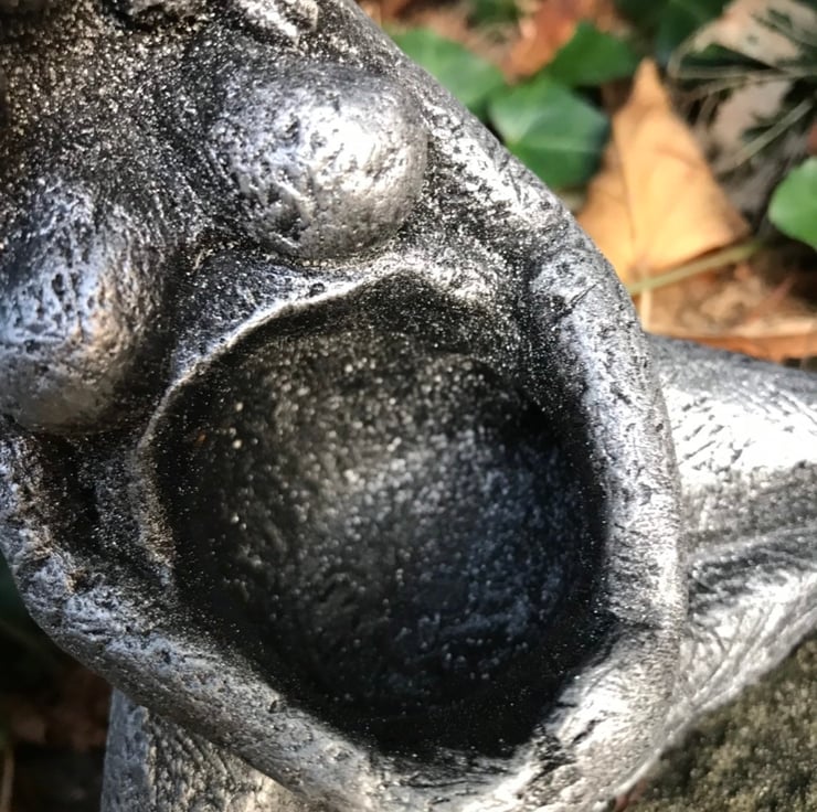 The photos show the statue black It is then over layed subtly with silver gilders wax.