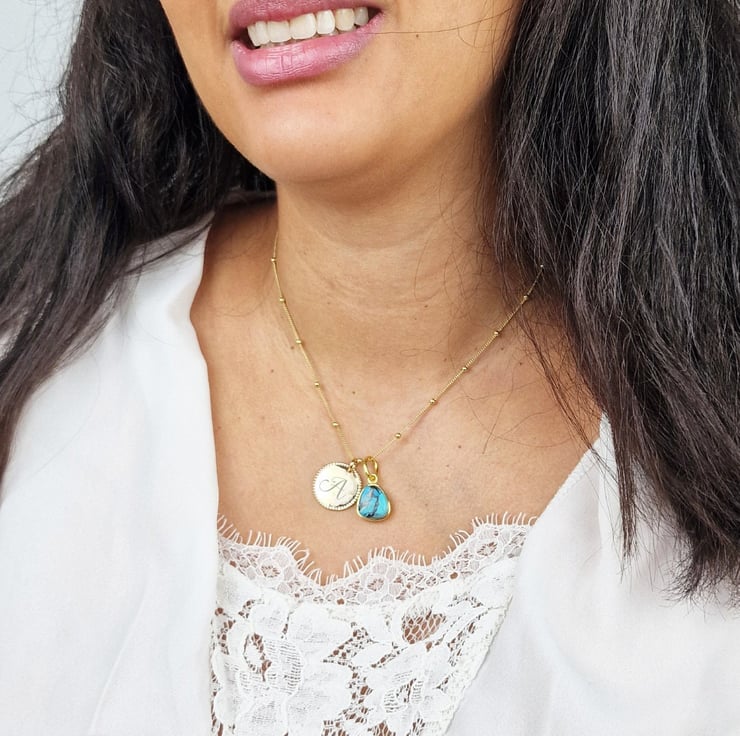 Combine an 18k gold vermeil plated initial letter necklace with a delicate birthstone - yours, his, hers, whoever's - for the perfect personalised necklace.