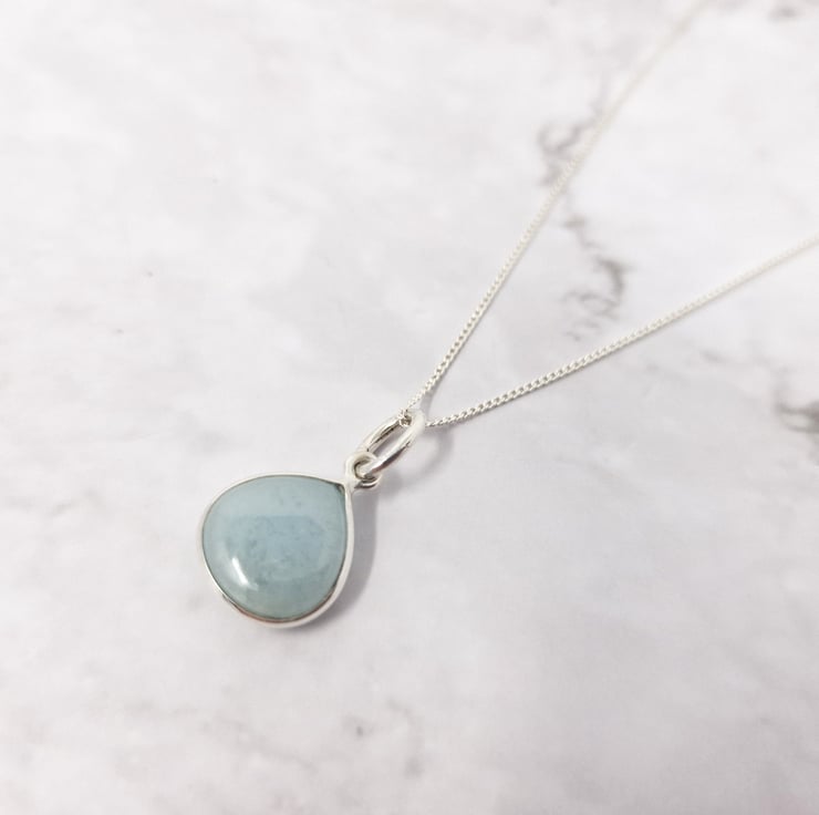 March Birthstone Necklace - 925 Sterling Silver Aquamarine Gemstone Charm