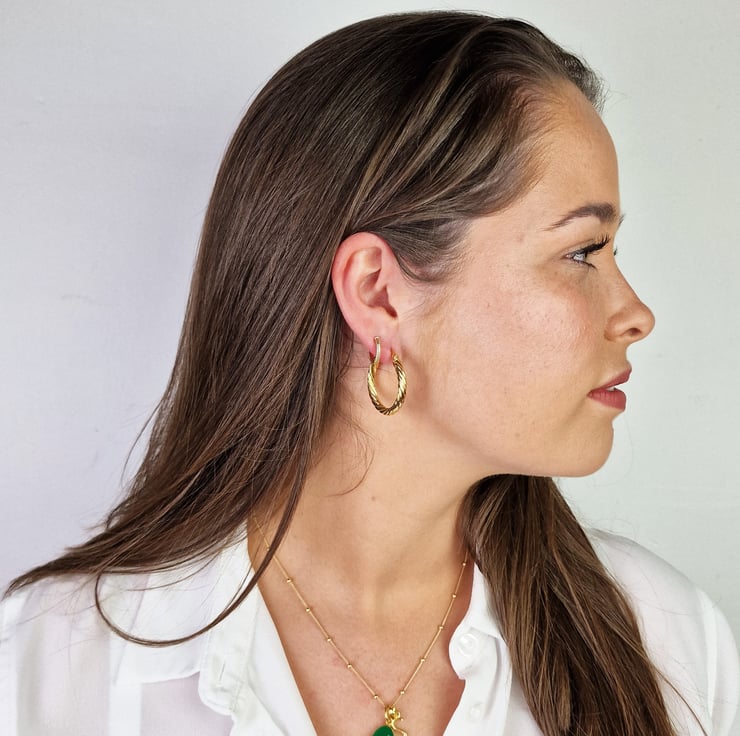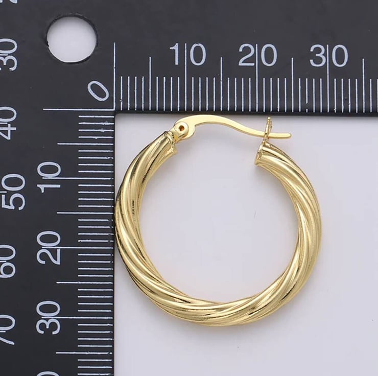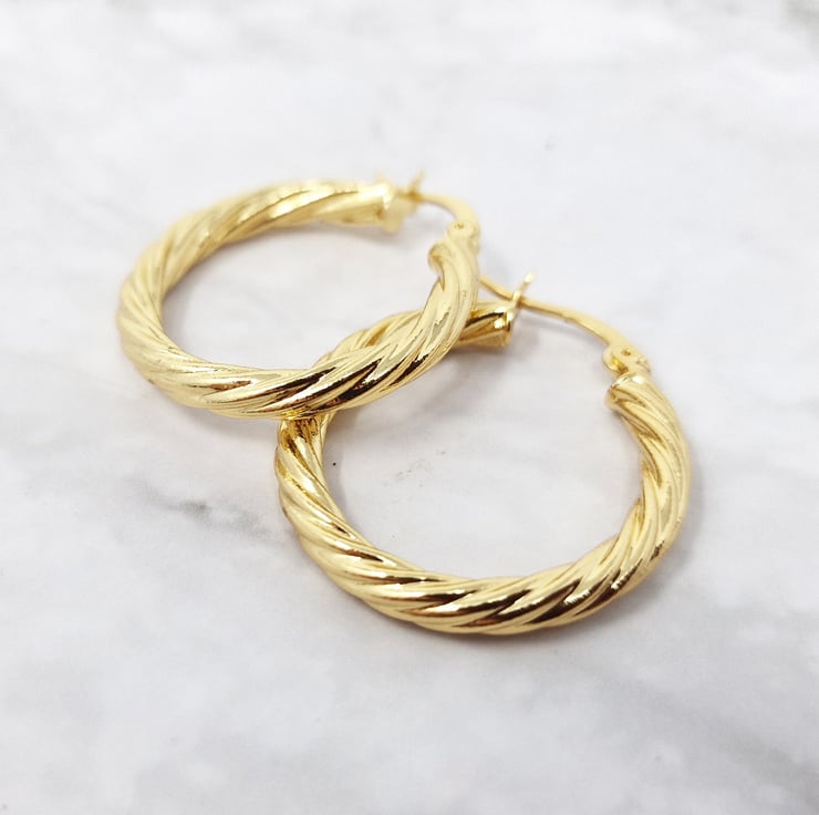 24ct Gold Vermeil Circle Rope Textured Earrings Twisted Rope Hoops 31mm Simple Hoops Gold Cartilage Rope Hoops Minimalist Earrings
