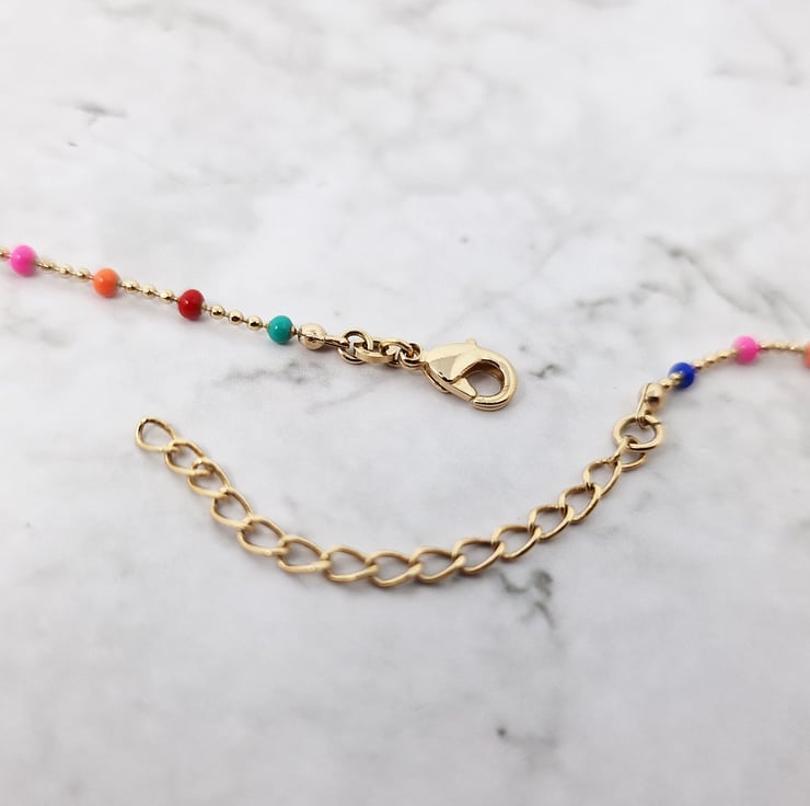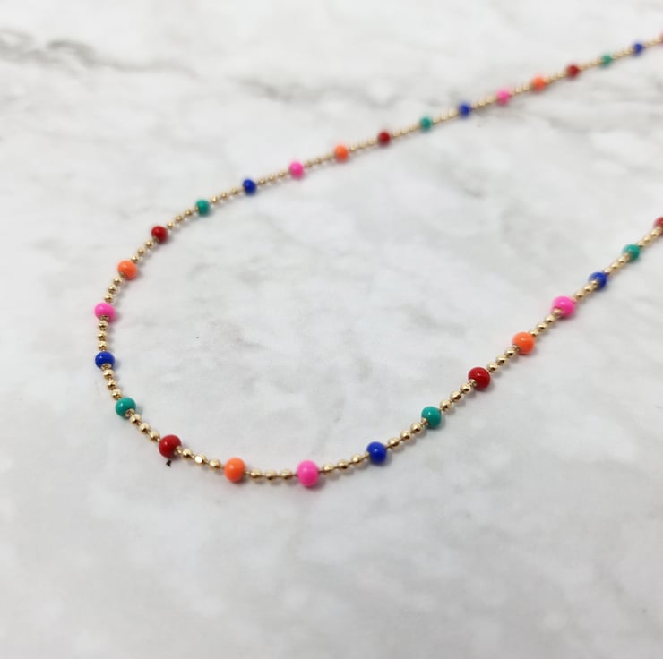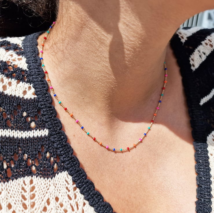 Carnival Mixed Bead Necklace Gift For Her Birthday Gift 18k Gold Plated Necklace Colourful Beads Pink Orange Red Green Blue Chain