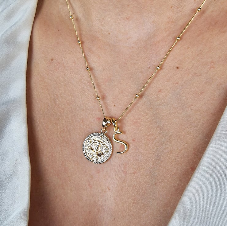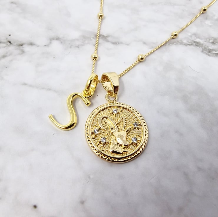 Beautifully refined and the perfect treat, our personalised Initial & Zodaic Necklace is ideal for gifting. This chic accessory looks super luxe when paired with any of our other necklaces, and will add a stylish finishing touch to any look. Select the letters and zodiac charm of your choice, and spoil yourself or someone special!
