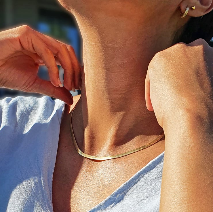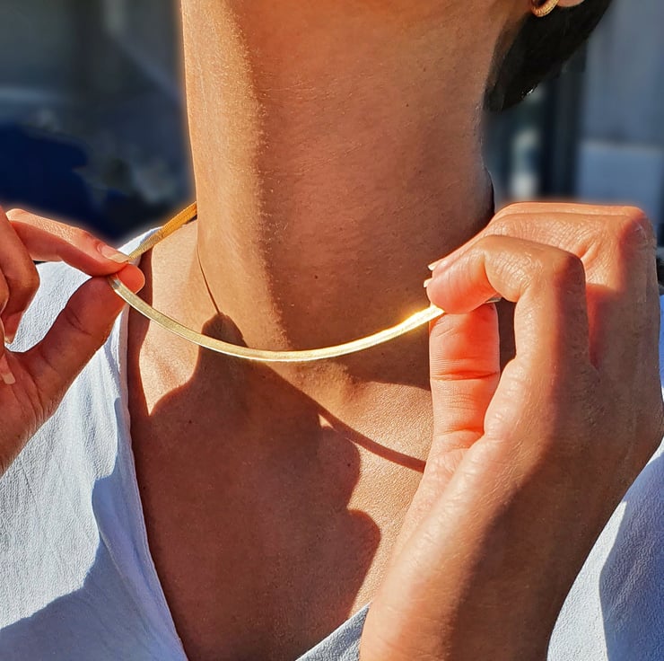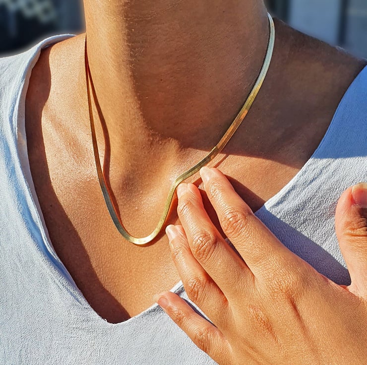 18ct Gold Plated Flat Snake Chain - Gold Herringbone Layering Necklace
