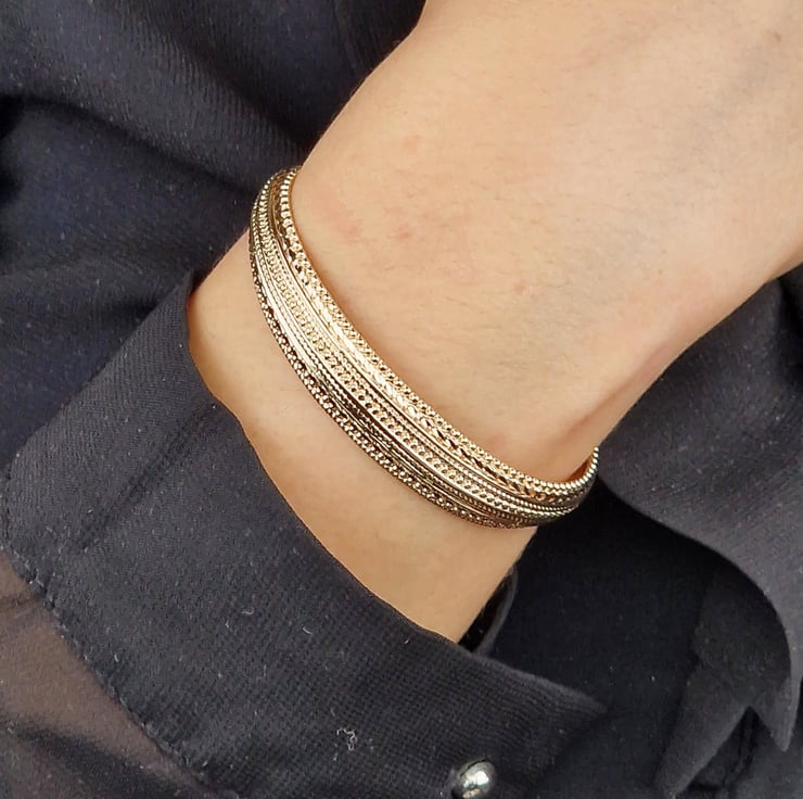 18ct Gold Vermeil Textured Adjustable Bangle - Luxury Bracelet
