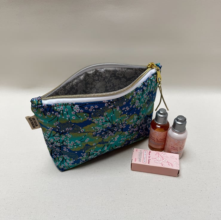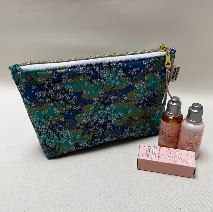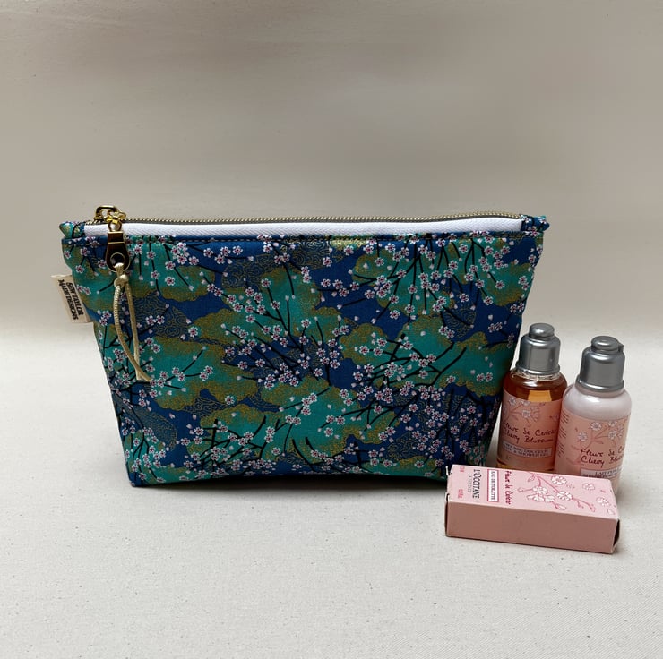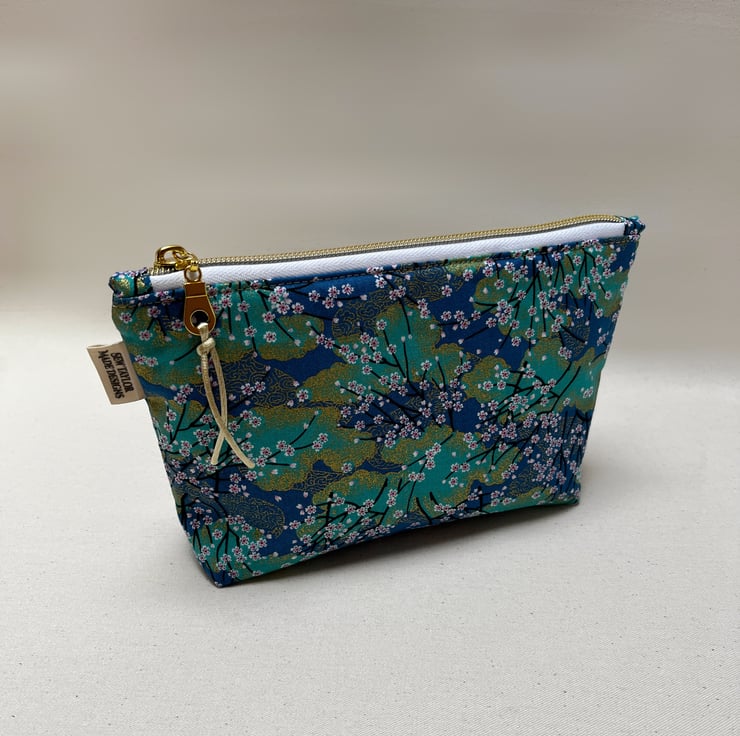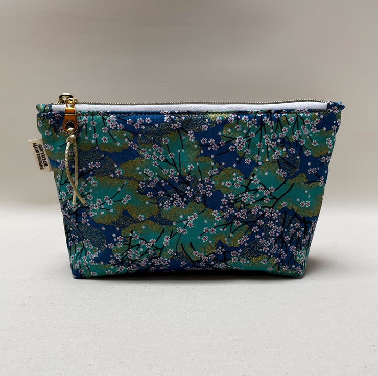 Lined with Liberty fabric, a gorgeous turquoise Japanese fabric has been used to create this timeless pouch.