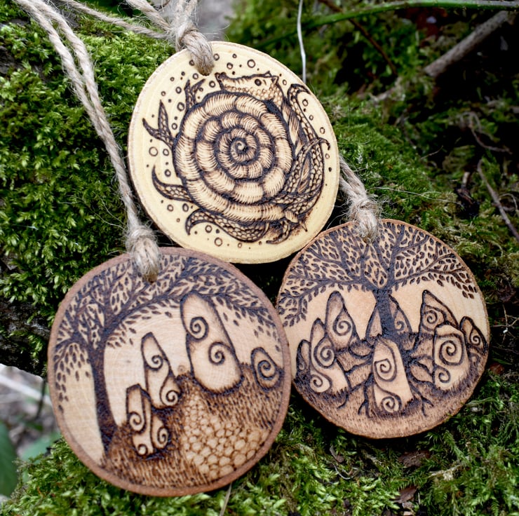 Swirly sea creature, pyrography hanging wood slice decoration gift.