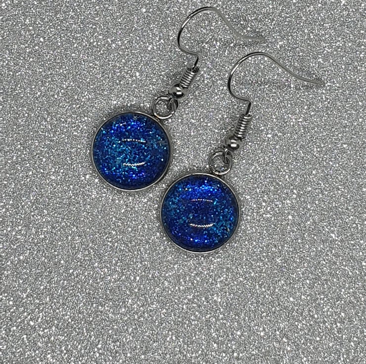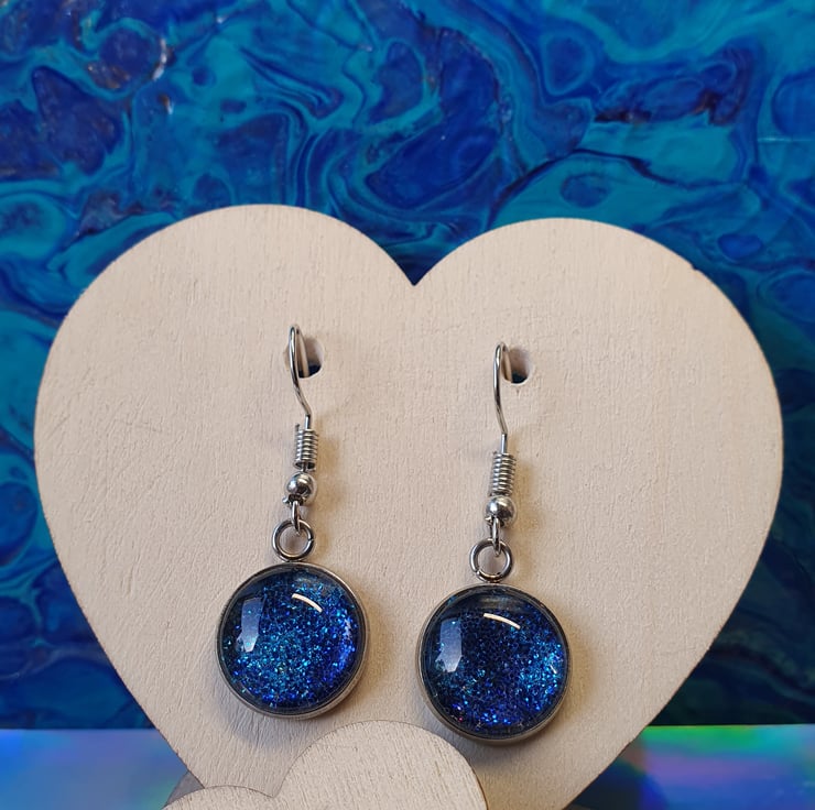1 set of 12mm glitter drops with stainless steel and rubber backs. This set includes turquoise/royal blue glitter. This set is made with glitter and glass cabochon. All my items are gift wrapped and can include a message if sending as a gift. Please send me a message with details if required, including the Item Title. My items are posted in an environmentally friendly recyclable jiffy bag.