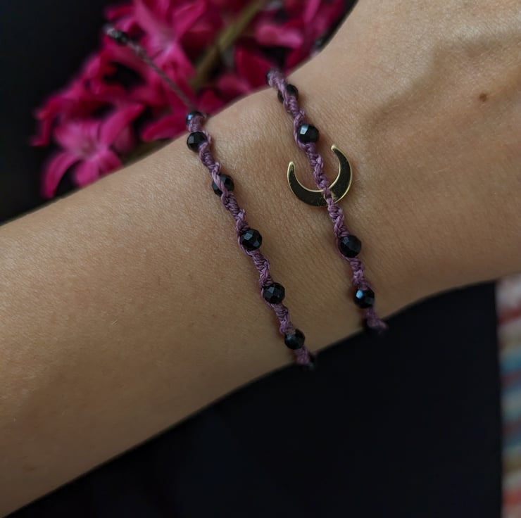 Set of two adjustable bracelets with Moon natural stones Tourmaline