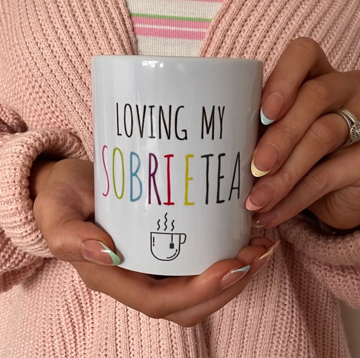 Celebrate someone’s Soberversary with this gorgeous sober hamper! I have designed each card, the mug, the journal myself and handmade the candle and decorative lid! Contains a colourful “loving my sobrietea” 11oz ceramic mug with a hot chocolate sachet with pink marshmallows to enjoy!
