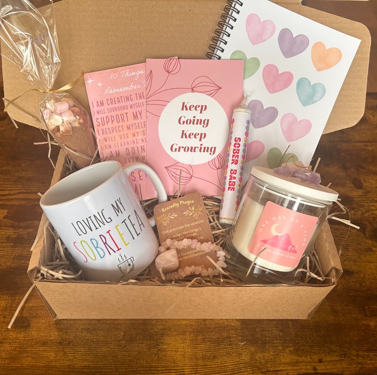 I am personally in recovery and have just started my second year in sobriety from a 15 year addiction. So I know first hand how hard addiction can be and what a fight overcoming it is. So I wanted to design a beautiful box personalised to sobriety! A real special gift to give someone overcoming the odds, and striving and thriving in a life away from addiction! X