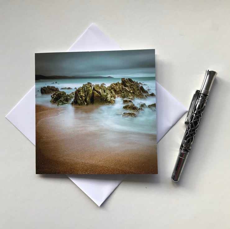 An any occasion card with a beautiful photograph showing Port Wrinkle Rocks on the south coast of Cornwall. This is a favourite spot for us to walk.