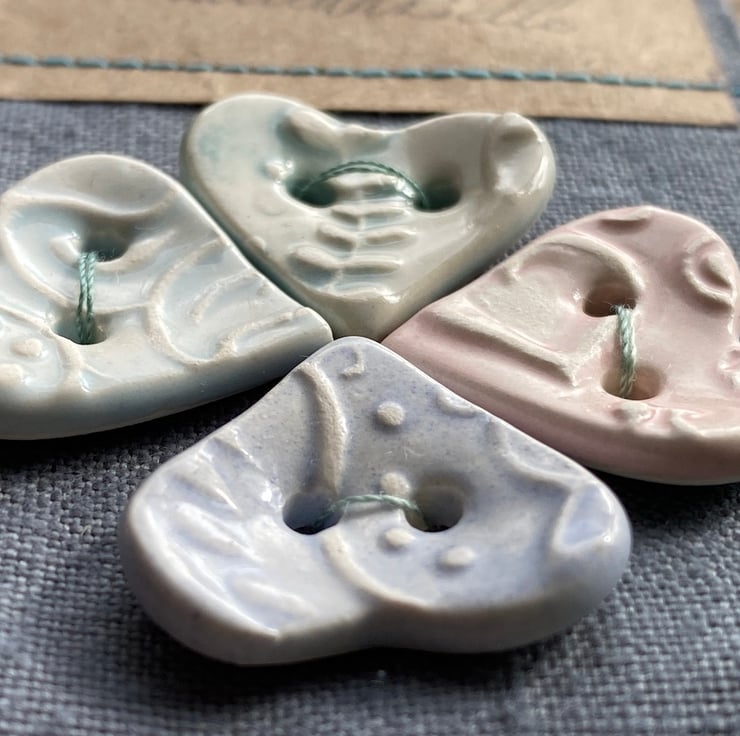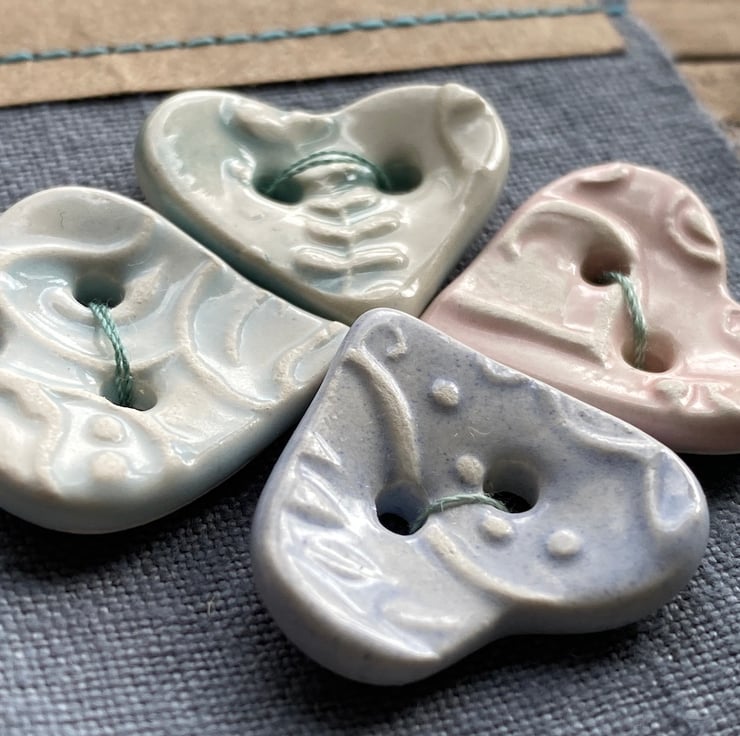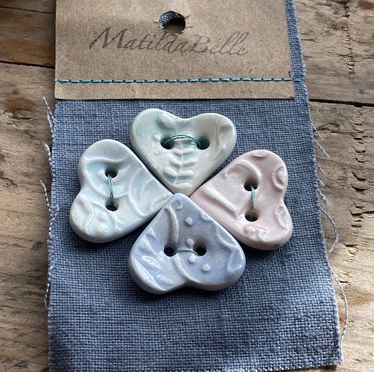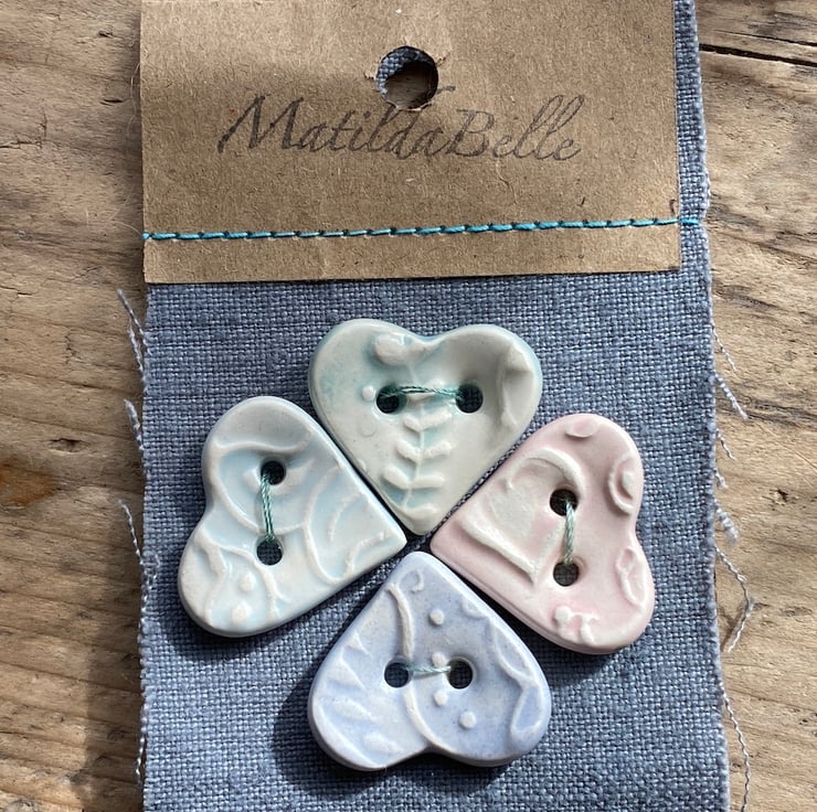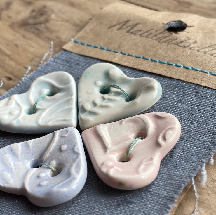 This Beautiful set of Heart buttons have been handmade from Earthenware Clay.