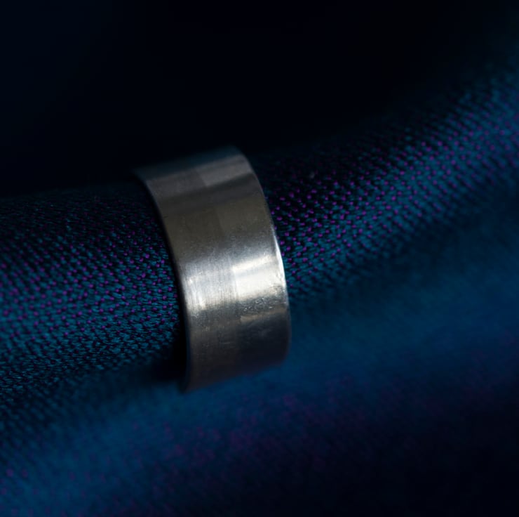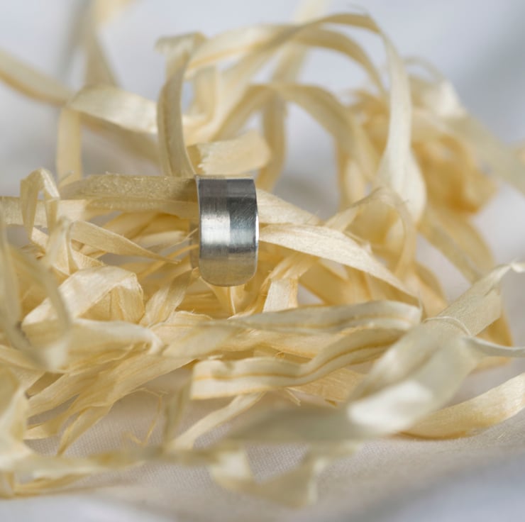 Slim silver ear cuff with a two tone texture, brush matte and mirror polished