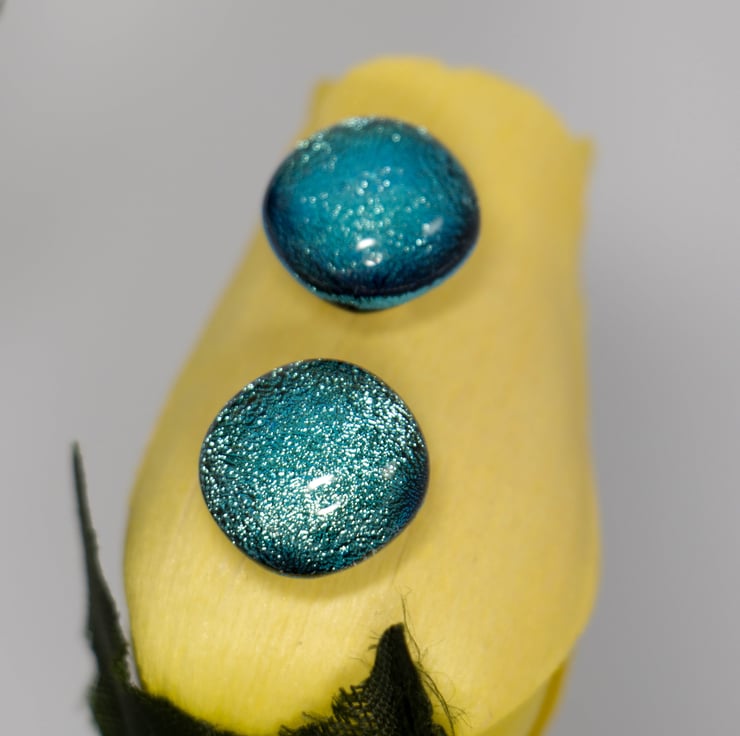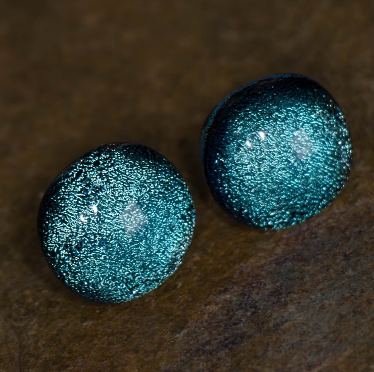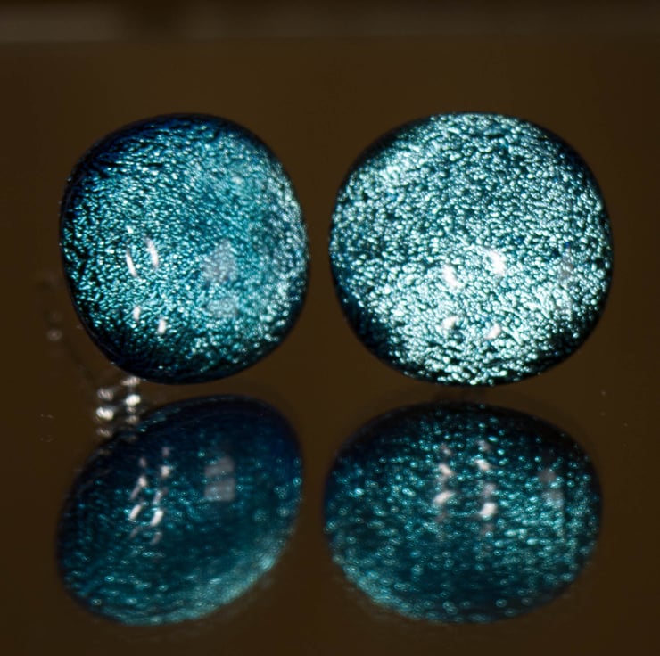 We have a range of earrings created from dichroic glass - we love working with it. The colours that Dichroic Glass show continues to amaze and surprise us. When we open the kiln we are always looking to see what the kiln-fairies have been up to.