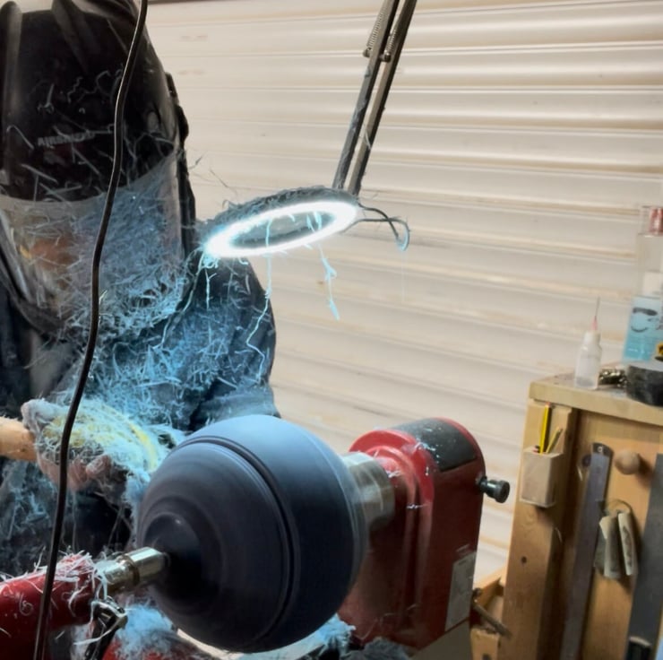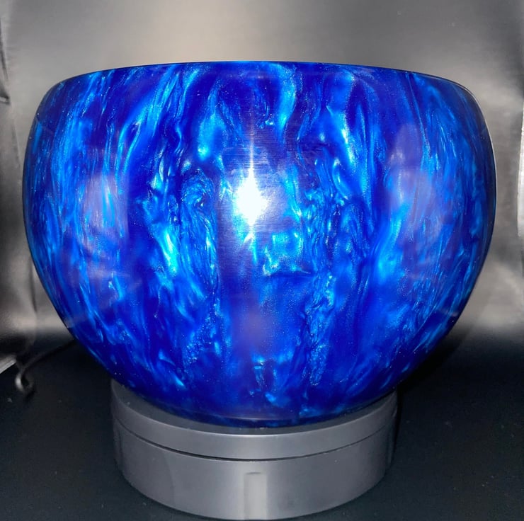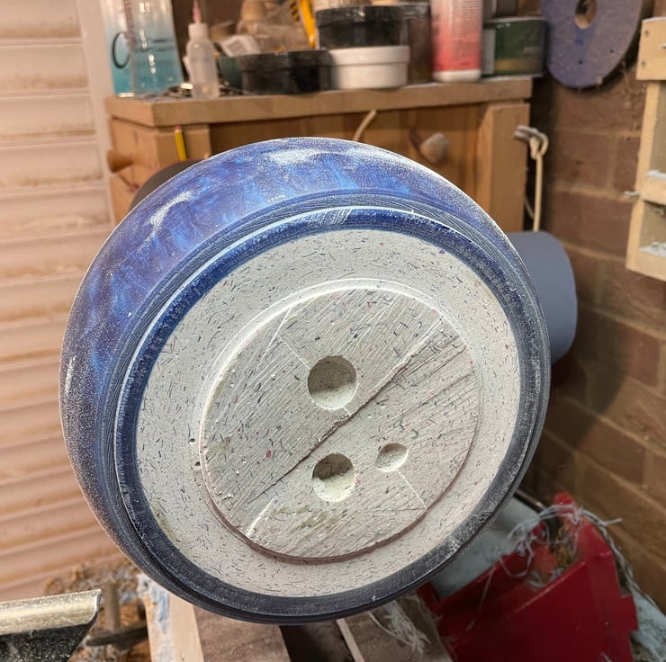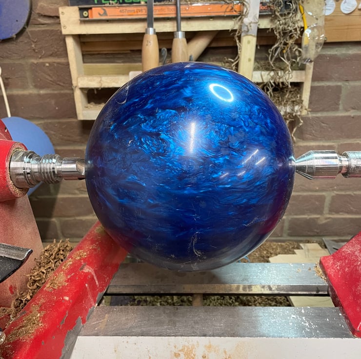 The blue marble like colouring is stunning and has a glass like finish. The pictures also show some of the transformation stages from ball to bowl! If you are interested you can see more pictures and videos of the process on my Instagram account(DanburyWoodWorkshop).