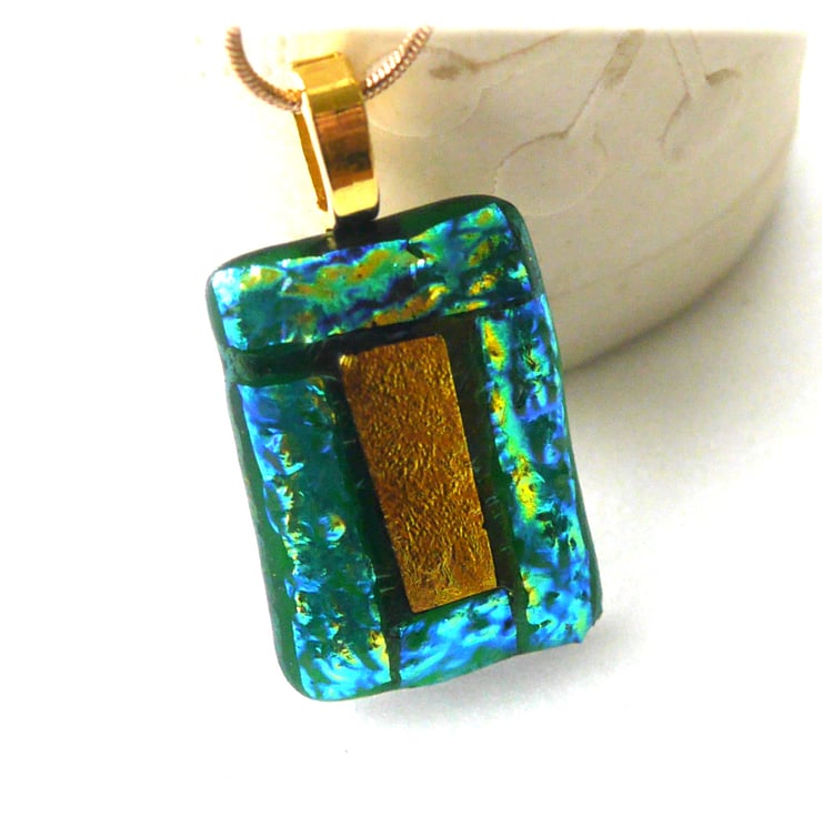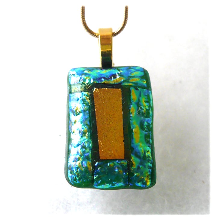 The pendant hangs from a gold plated bail, I choose the bail to best match the colour of the glass and this one suits gold best. The bail is securely glued to the back of the cabochon using E6000 strongest glue.