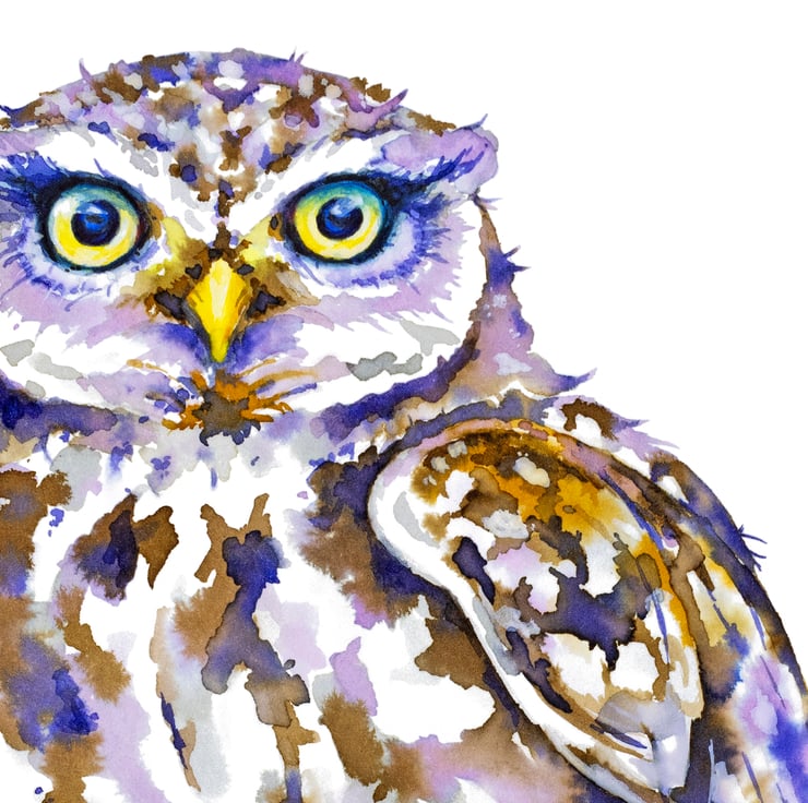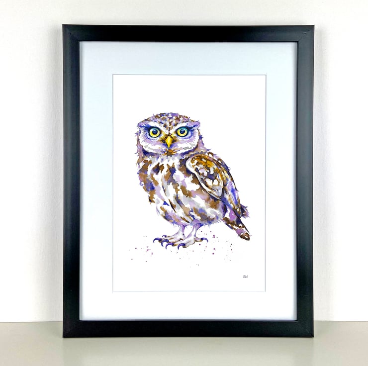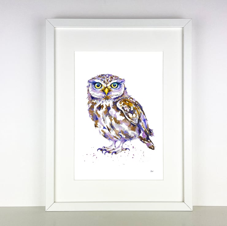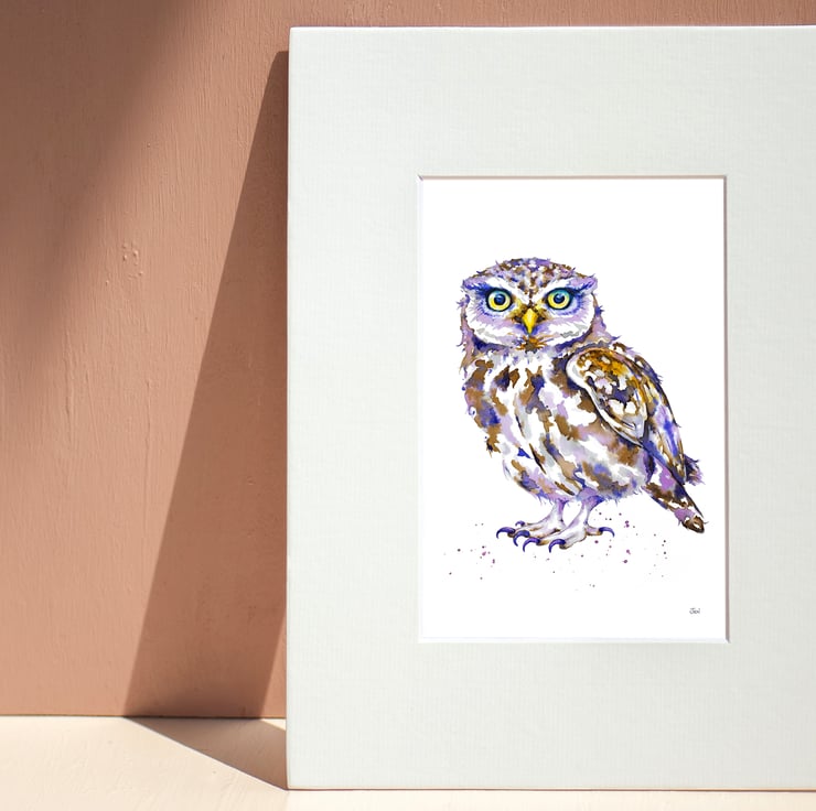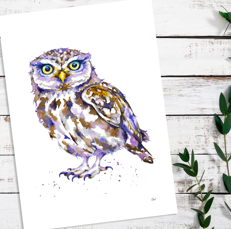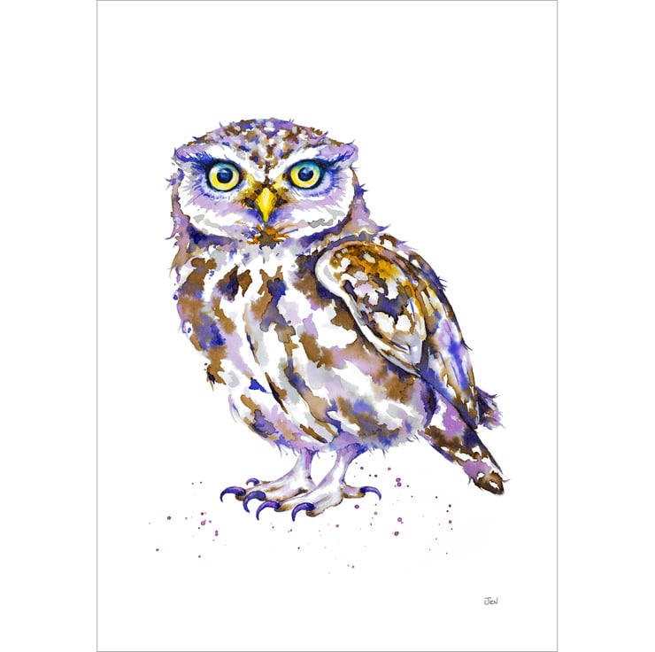 A beautiful fine art Giclée print of the painting 'Little Owl' by UK artist Jen Lewis. Produced professionally using museum quality inks.