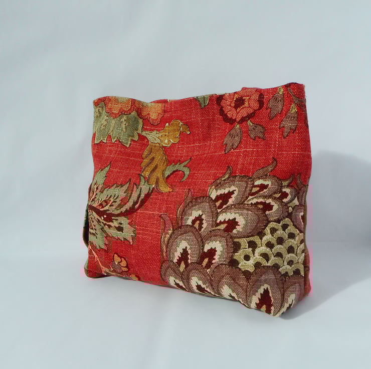 Made from an offcut of furnishing weight linen and viscose fabric - Ian Sanderson Oleander. This fabric retails at £115/m.