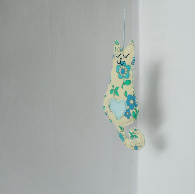 Frida is made from a vintage floral print fabric and is a lightly padded hanging ornament/decoration. Perfect letterbox gift.