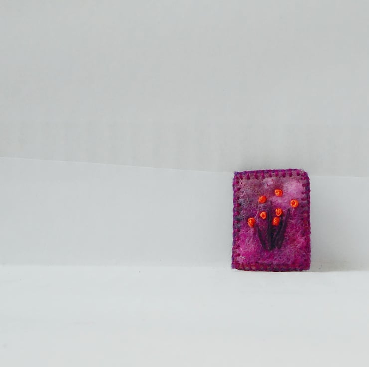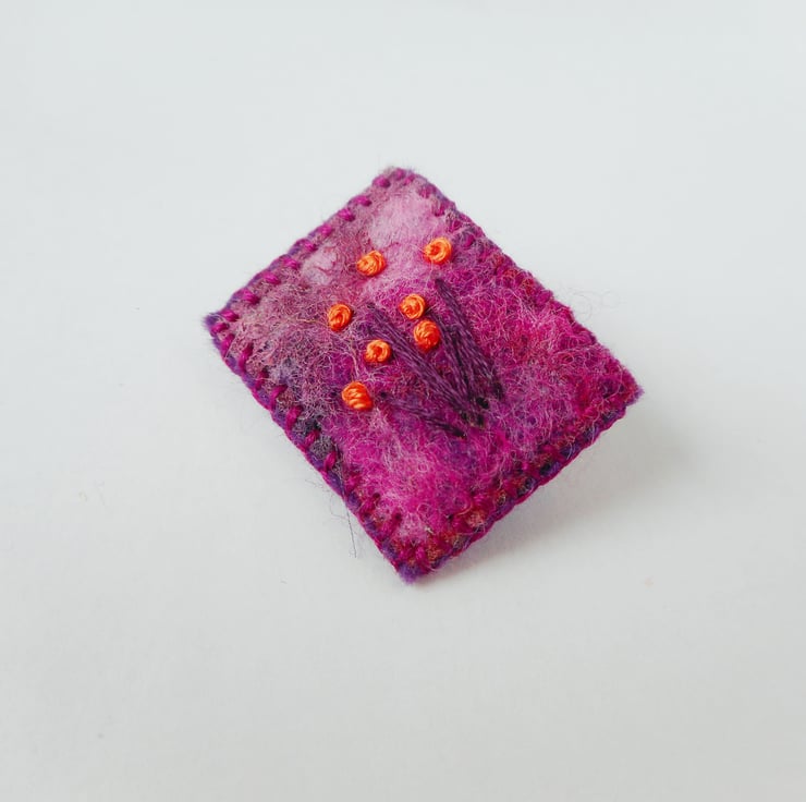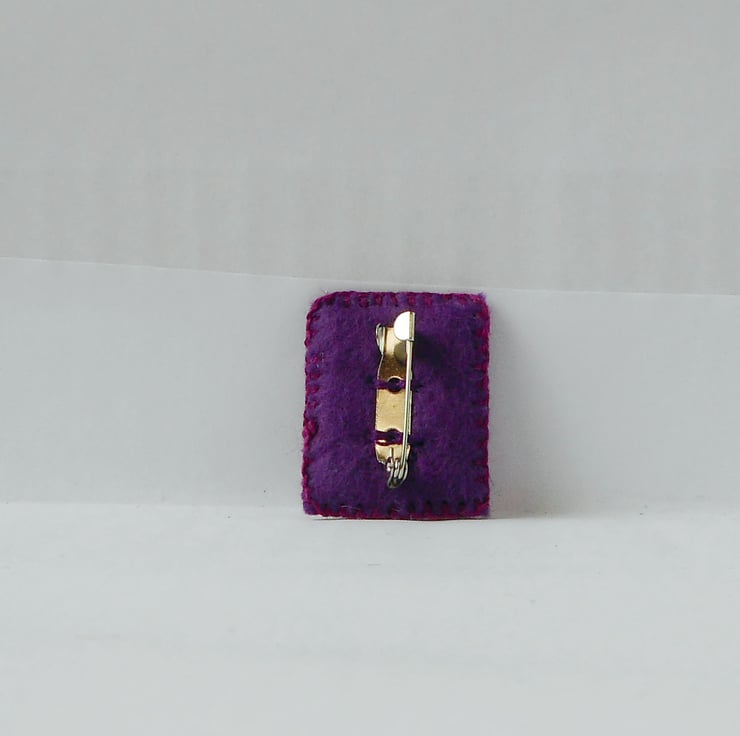 Needle felted and hand embroidered brooch, backed with purple wool felt.