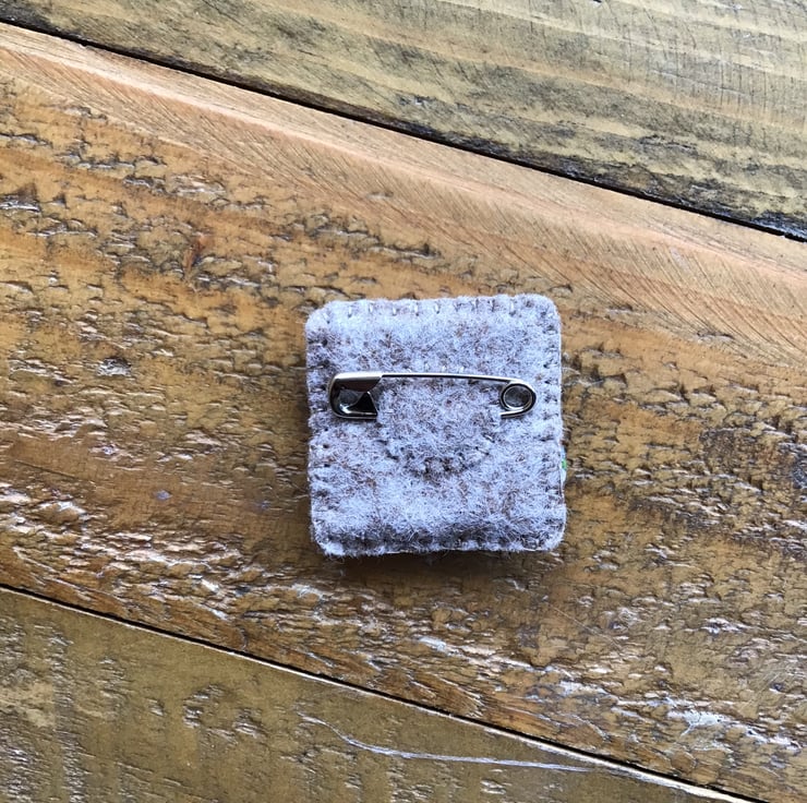 Hand sewn. Measures 3.3cm square.