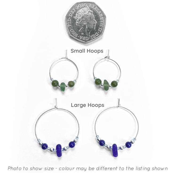 Each hooped earring measures 3cm in diameter (1.2 inches). It's a lovely size to be noticeable whilst being comfortable for everyday wear. The added Czech glass beads give the earrings that lovely boho, beachy vibe!