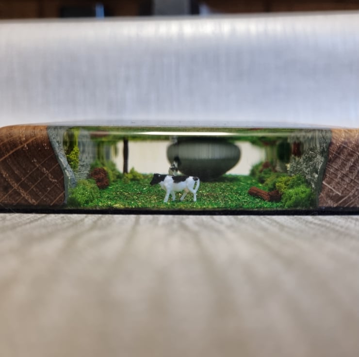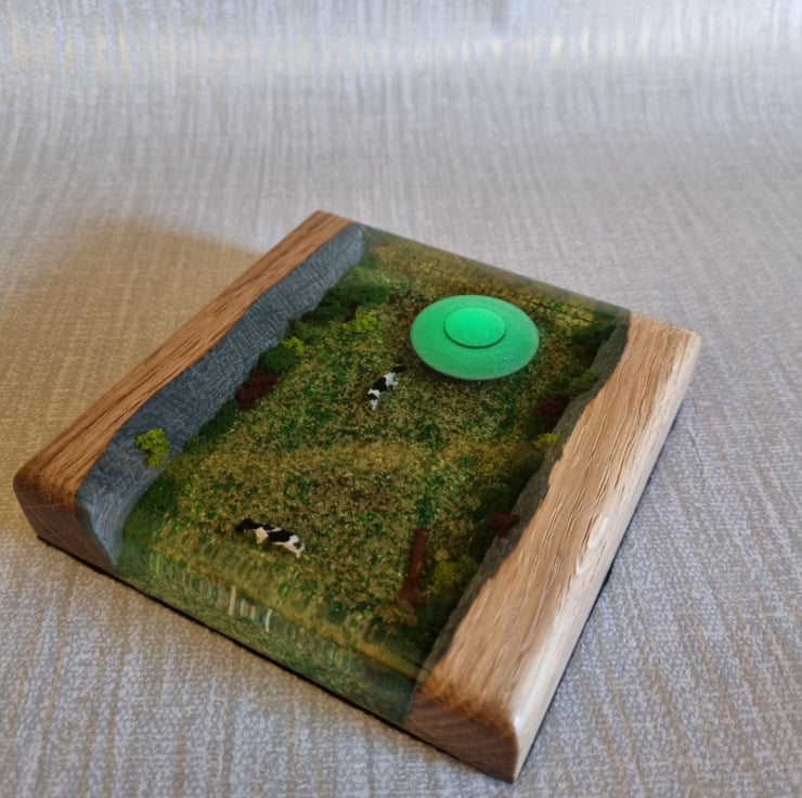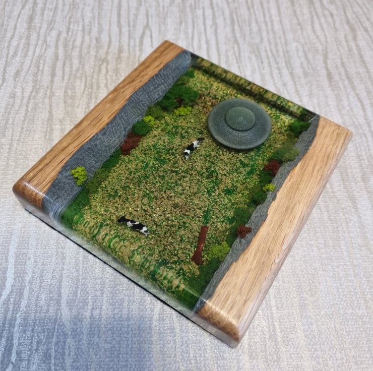 Made out of solid Oak and Resin with a felt base.