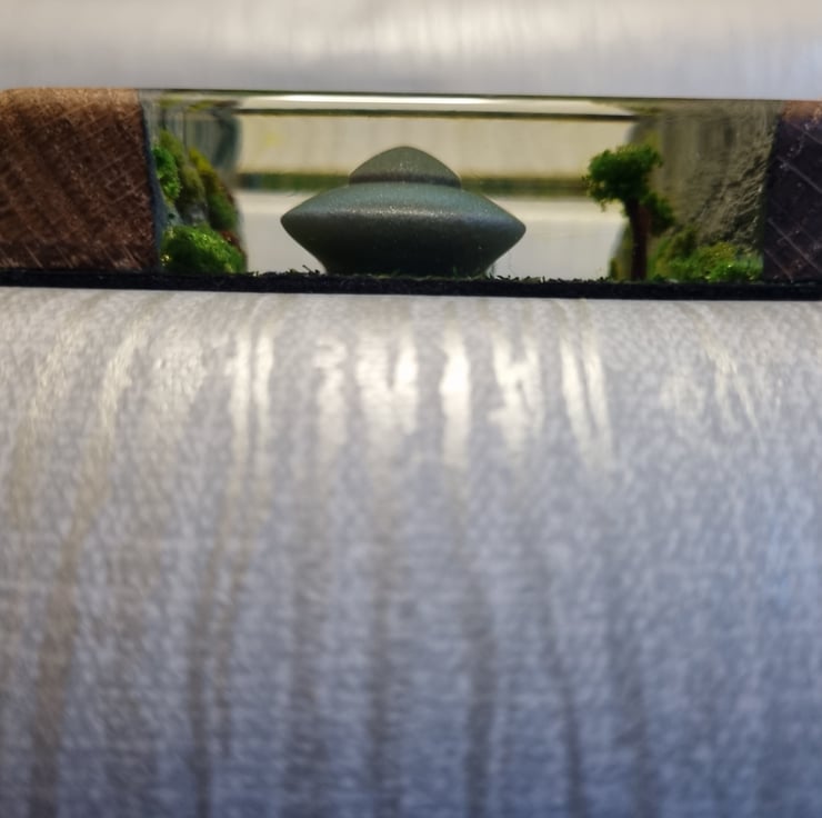 A beautiful coaster with a UFO diorama set in a scenic valley.