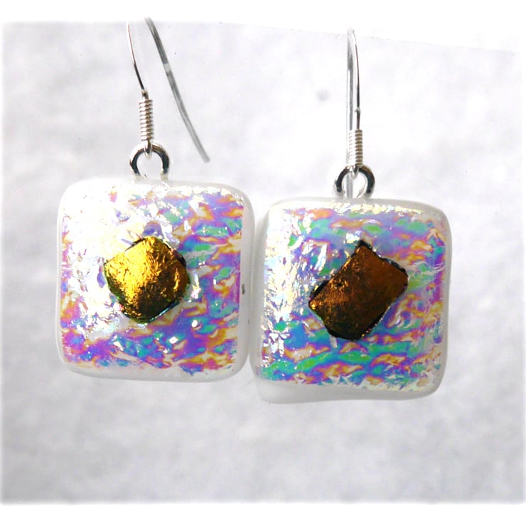 Handmade Fused 290 Dichroic Glass Earrings White Gold