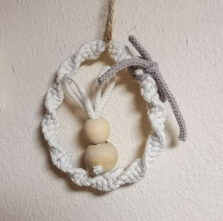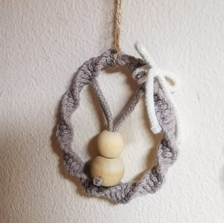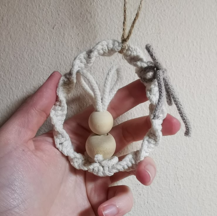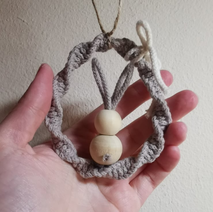 Set of two Easter bunnies hanging in egg shaped ornament.