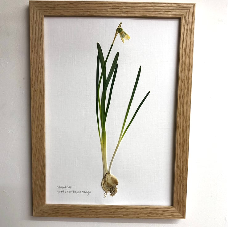 It is mounted on white handmade paper, annotated with the name of the plant and its meaning. The glazing is acrylic, to help preserve the colour in the flower, and it is framed in a solid oak, UK made, frame.