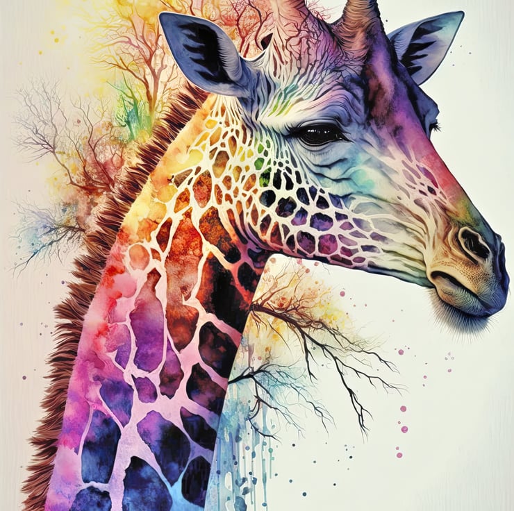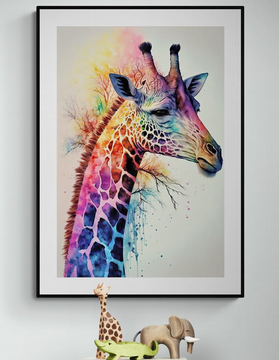 This beautiful watercolour painting of a giraffe is the perfect addition to your home or office decor. The vibrant colorus and attention to detail make it a standout piece. This painting is printed on high-quality paper and will arrive to you unframed. It's a great option for those who want to choose their own frame to match their existing decor. The white background allows the giraffe to really pop and make a statement. This painting would make an excellent gift for the animal lover or art enthusiast in your life. Hang it in a nursery or child's room for a cute and whimsical touch. Overall, this watercolour giraffe painting is a must-have for any animal or art lover!