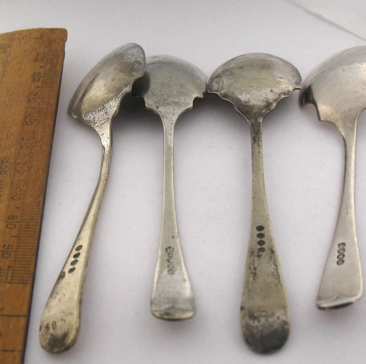 These are smallish teaspoon-sized spoons (13-14cm) and not suitable for food use, but they will take no harm from being stuck into the soil and the ink in the lettering is water-based so it won't affect your plants. You will receive the four spoons shown in the pictures and yes, they are very old and battered.