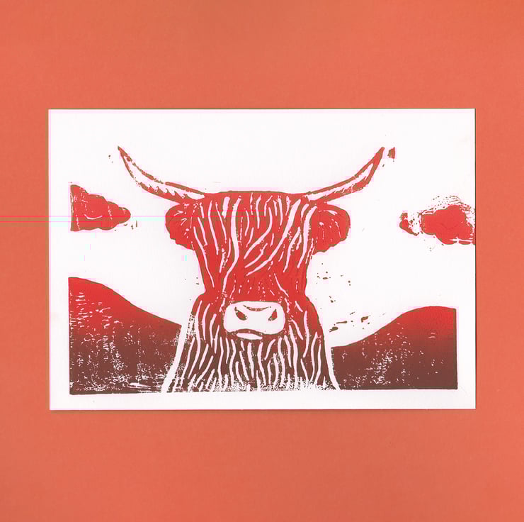 This lino print is hand burnished on 220g paper. The print size is 19x12cm and the paper size is A5, 14.8x21cm. Each print is hand signed in the back.