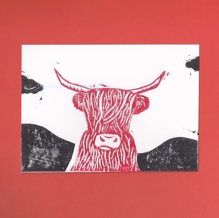 This lino print is hand burnished on 220g paper. The print size is 19x12cm and the paper size is A5, 14.8x21cm. Each print is hand signed in the back.