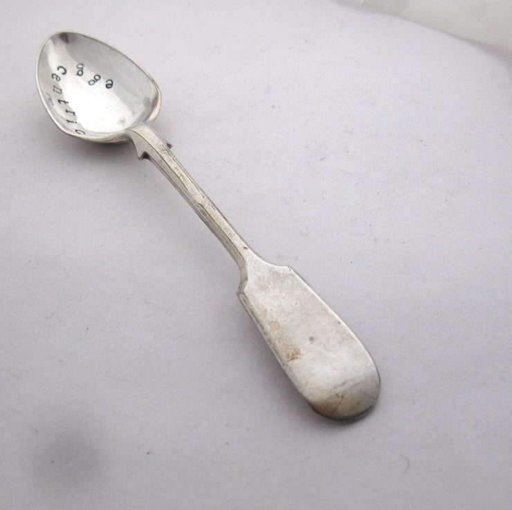 You will receive the spoon shown in the photos. It's about 12.5cm long and could also be used as a coffeespoon. Please note it is well over 100 years old so it does show signs of age and wear although it's actually in pretty good condition considering. But please do look carefully at the pictures.