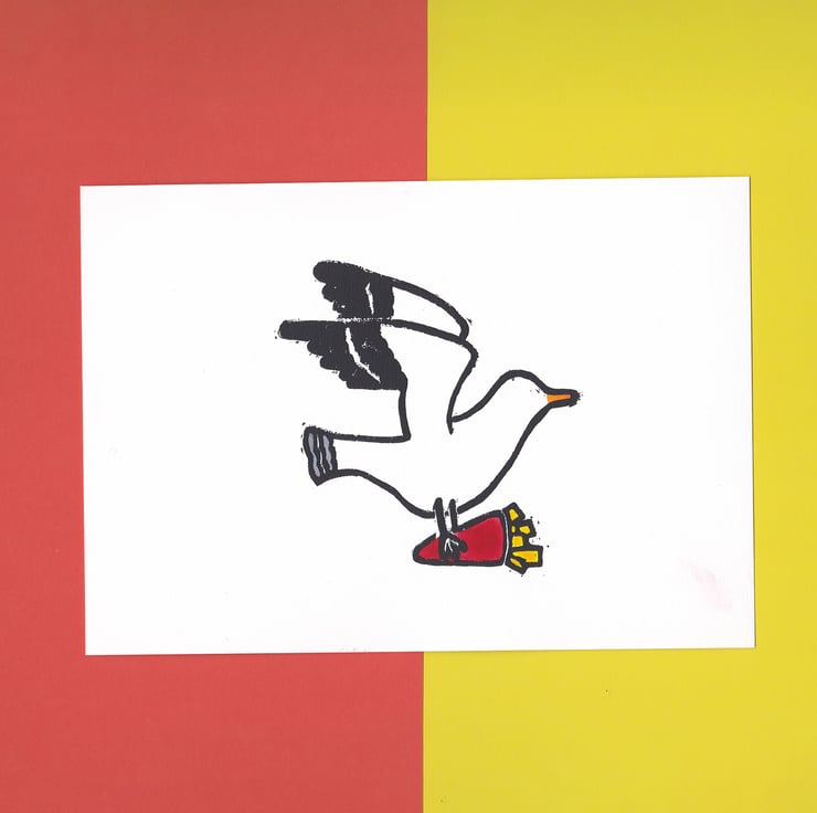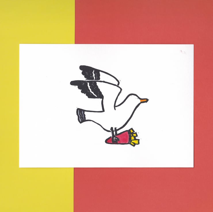 This lino print is hand burnished on 200g paper. The print size is 9x9cm and the paper size is 15x10.5cm. Each print hand signed in the back.