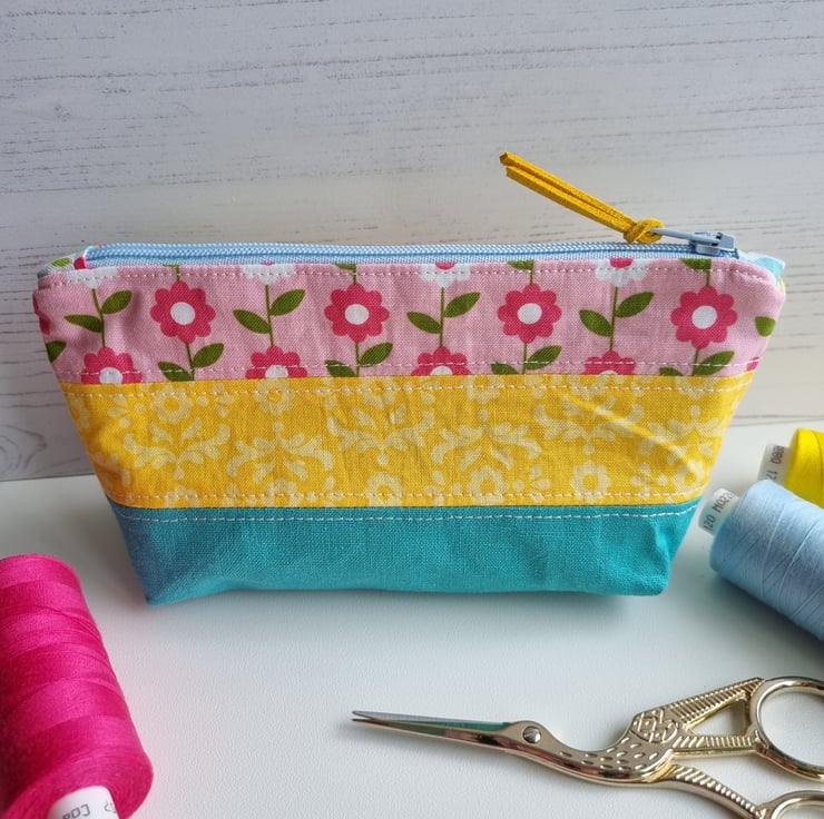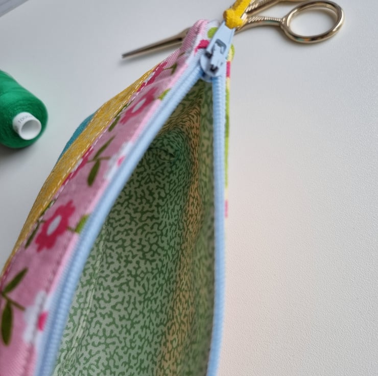 Beautiful handmade, spring inspired mini zipped pouch.