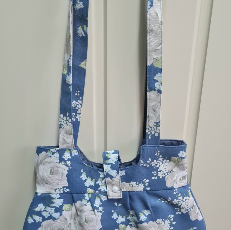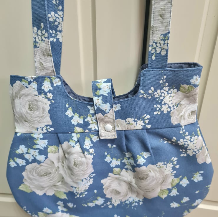 This is a shoulder bag made in Cath Kidston Blue Rose fabric.