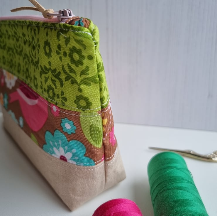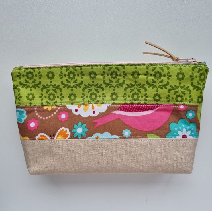 Beautiful handmade, spring inspired large pencil case or zipped pouch.