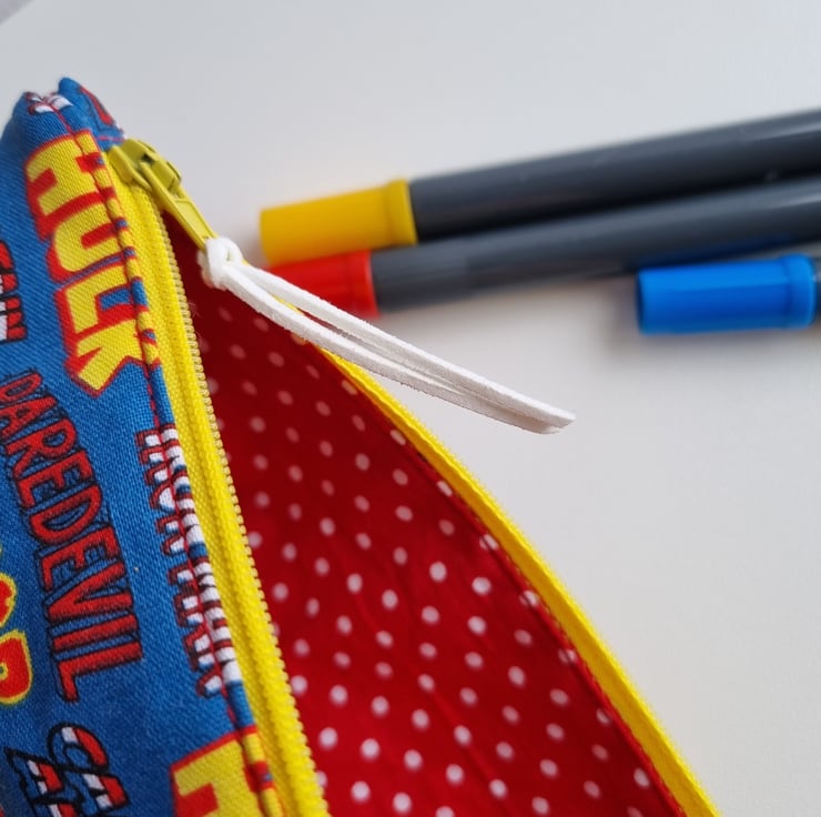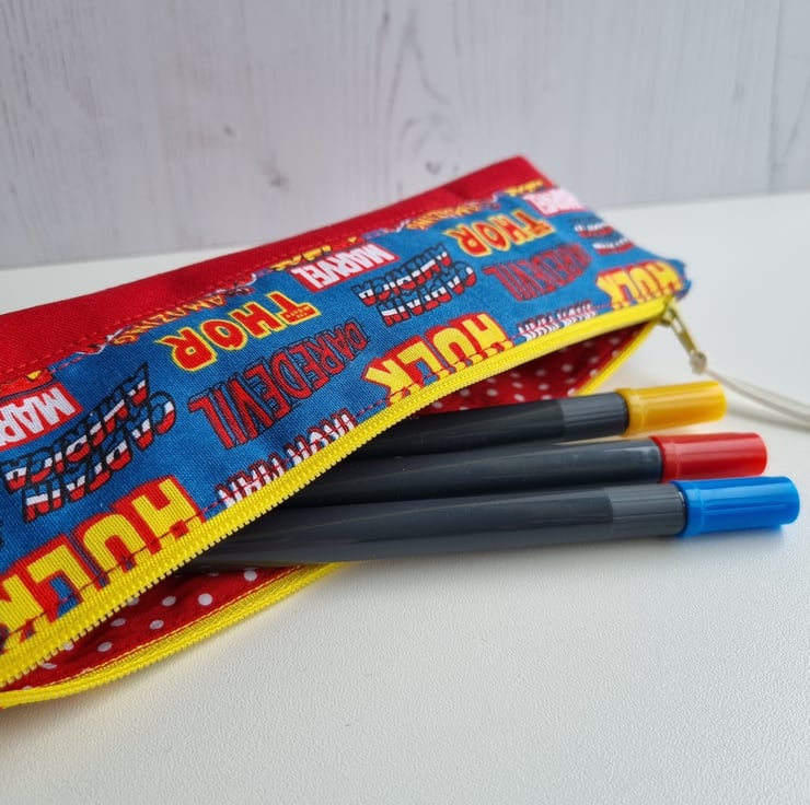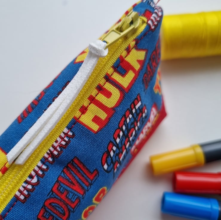 Beautiful handmade, super heroes inspired pencil case or zipped pouch.