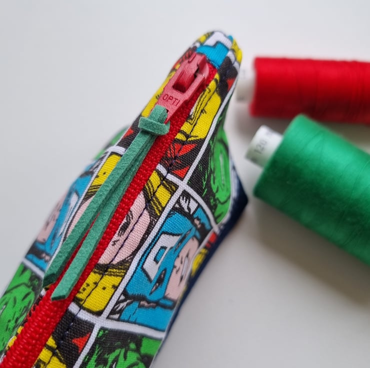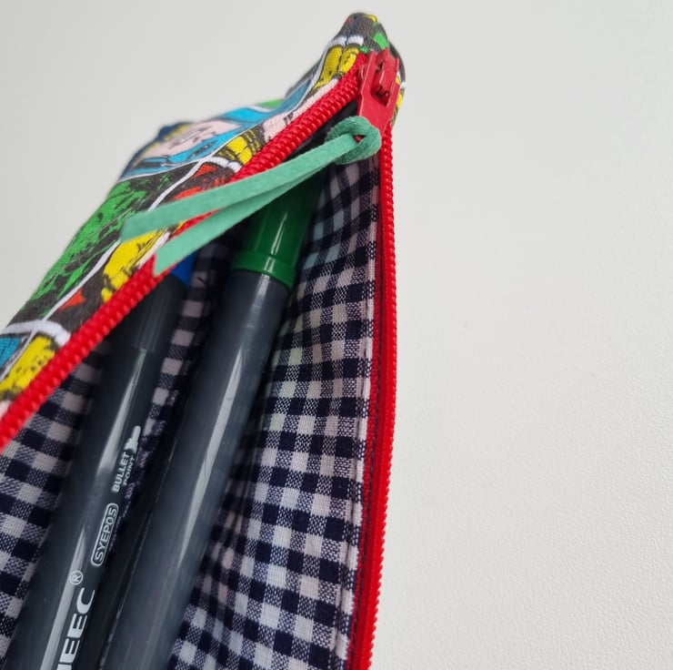 Beautiful handmade, super heroes inspired pencil case or zipped pouch.