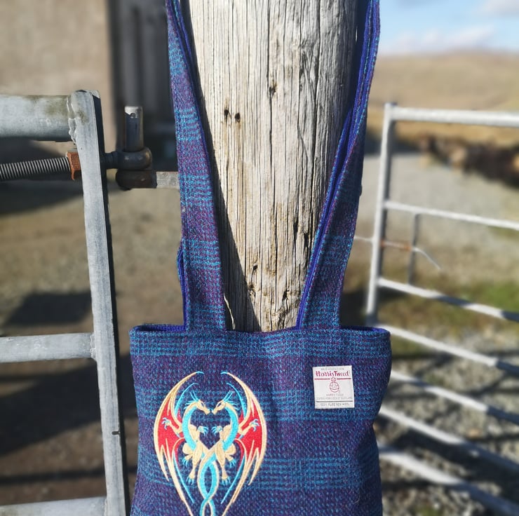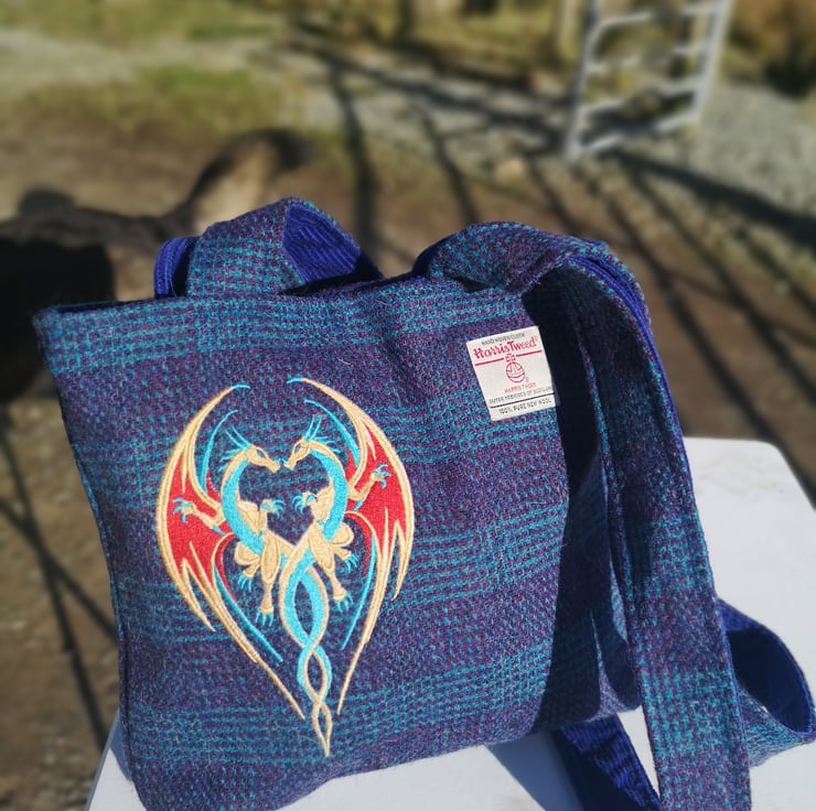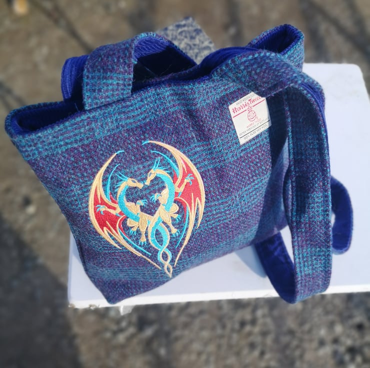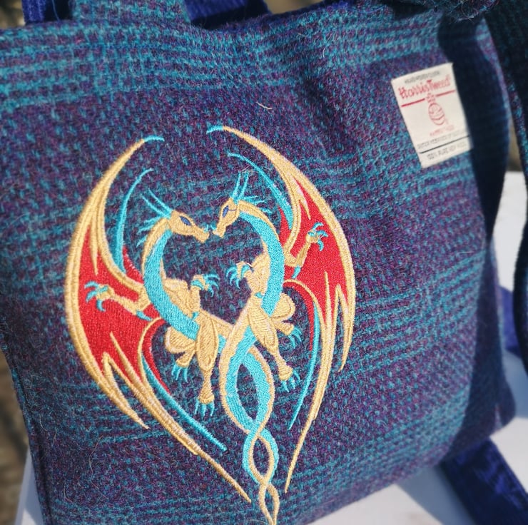 This bag is woven by Miriam over at western Isles Designs. I have added a brand new intertwined dragon embroidery. It is gorgeous.