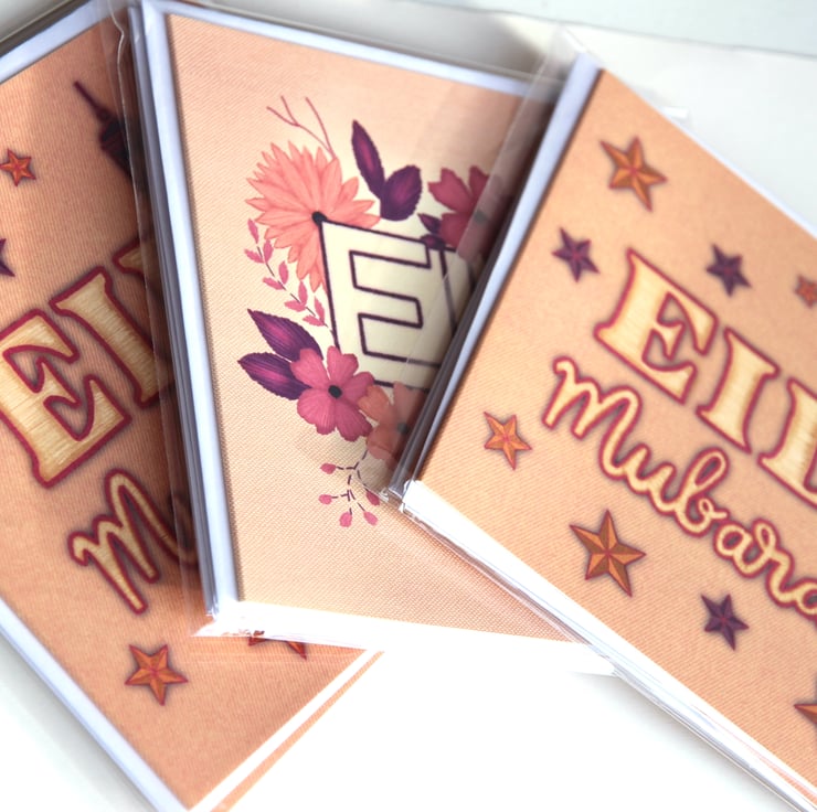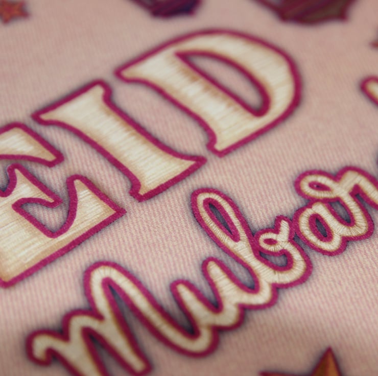 I've always enjoyed creative pastimes, and personalising gifts to my family and friends. Lately I've been particularly drawn to producing digital art, and I recently participated in an online hand lettering tutorial drawn with textile effects. I was inspired by the finished artwork to incorporate these techniques into my own designs. With the month of Ramadan approaching I saw an opportunity to offer unique, elegant Eid card designs for others to gift to their friends and loved ones.