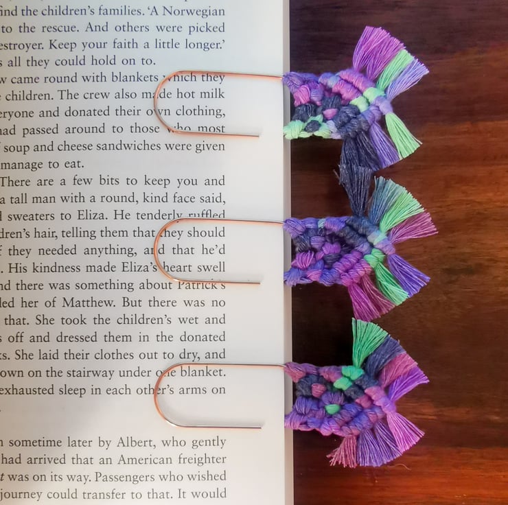 Set of 3 bookmarks on jumbo rose gold paperclips.