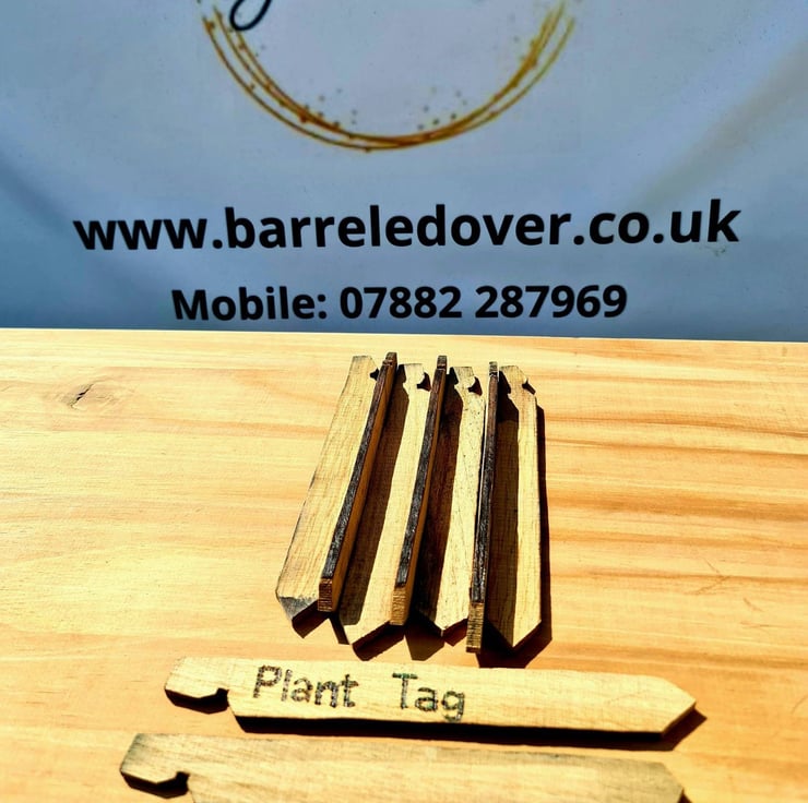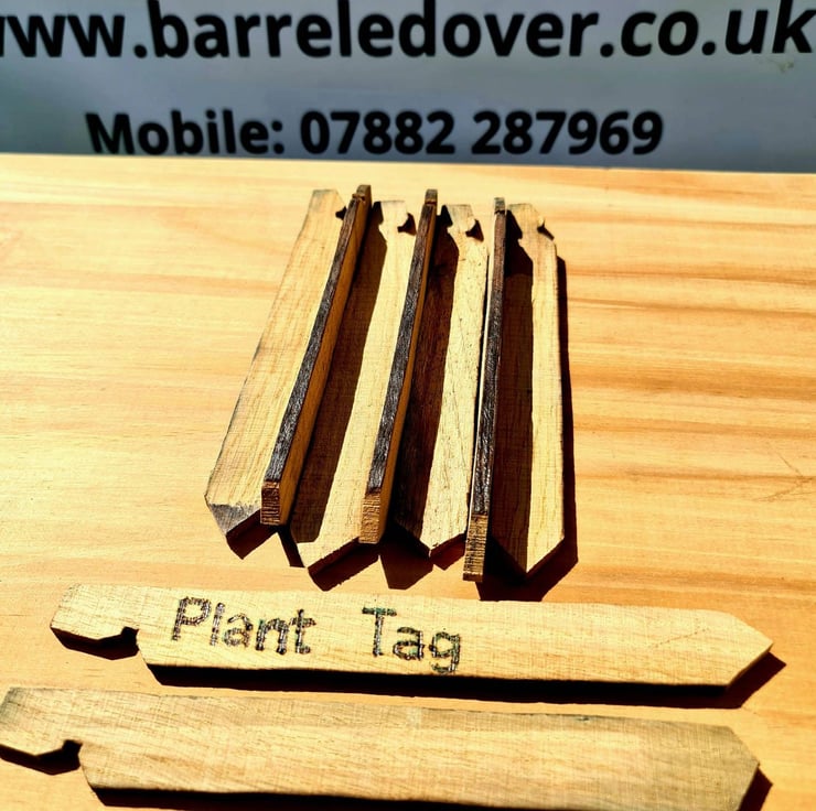 These beautiful tags are made from an oak whisky barrel stave. They are available in packs of ten blank or etched with names of your choice.