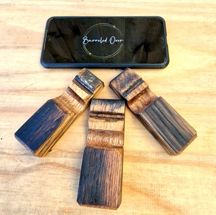 This lovely little stand has been handcrafted using an oak whisky barrel stave. The Phone can stand up-right or horizontally, perfect watching a movie. Its also small enough to put in your bag making it easily portable,