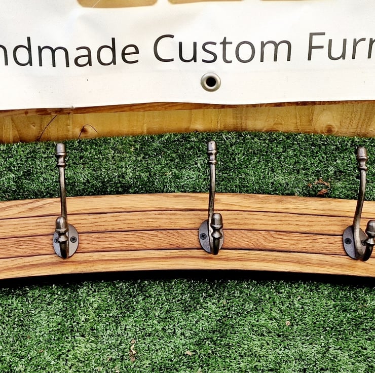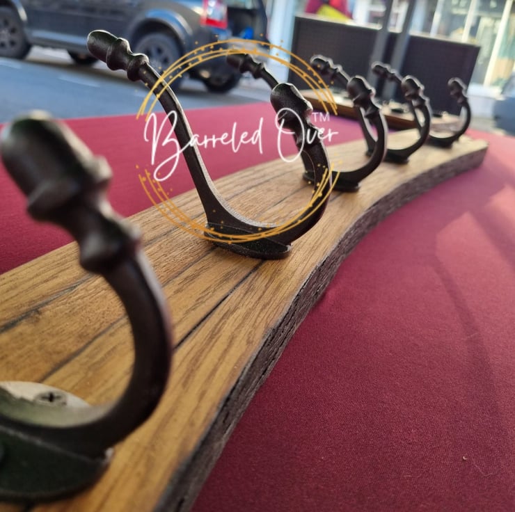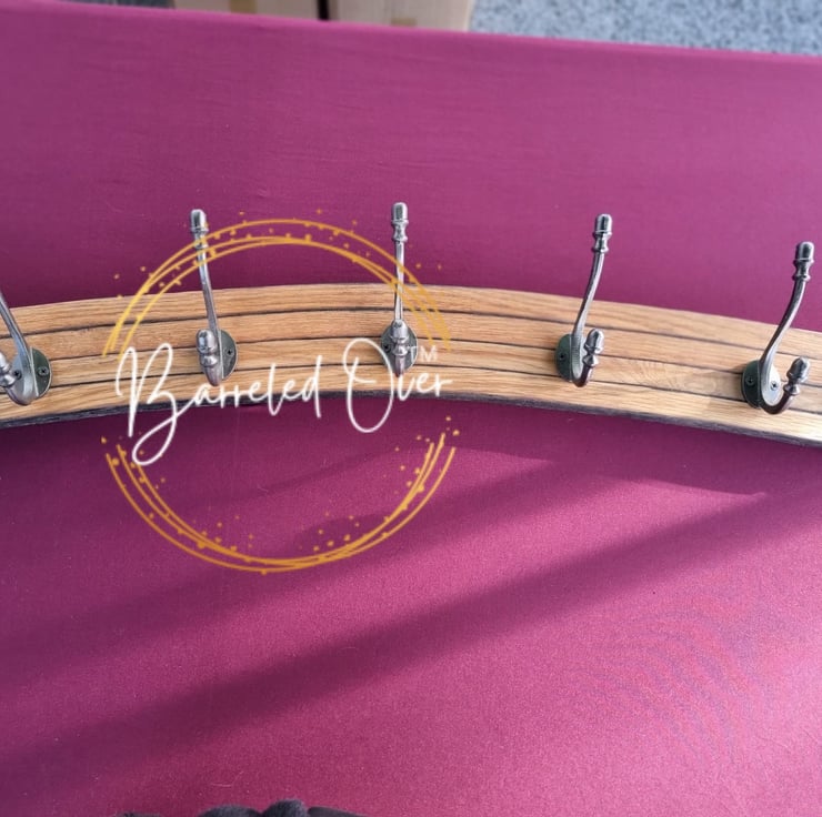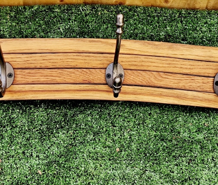 A different version of our single stave hanger, this is handcrafted using 4 Barrel Staves to give a flat surface without losing the curve and character of a barrel and creating a real conversation piece in your hallway