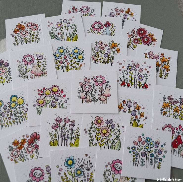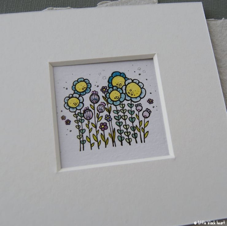 it is hand drawn and coloured with watercolour paints, pens and inks, on a lovely textured watercolour paper. (300gsm)